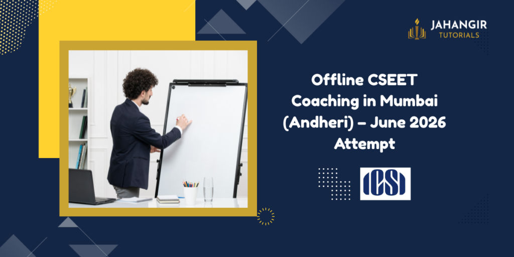 Startt your CS journey with the best Offline CSEET Coaching in Mumbai. Join Jahangir Tutorials for expert faculty, full syllabus coverage, and June 2026 prep!